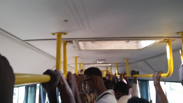 By now, the little crowd at the BRT stop had grown into a little human mass. A man in a navy blue suit pulled out his phone to capture this moment. His big eyes twitching behind his low-budget 5-inch Tecno phone.
